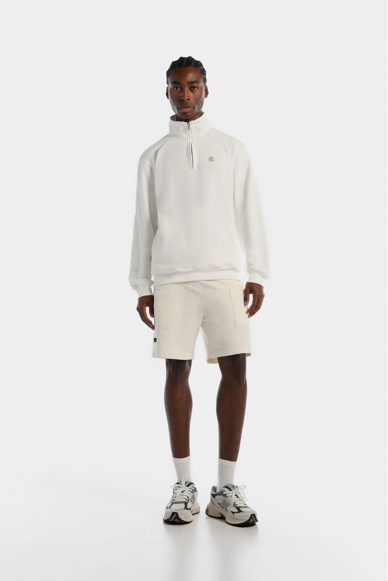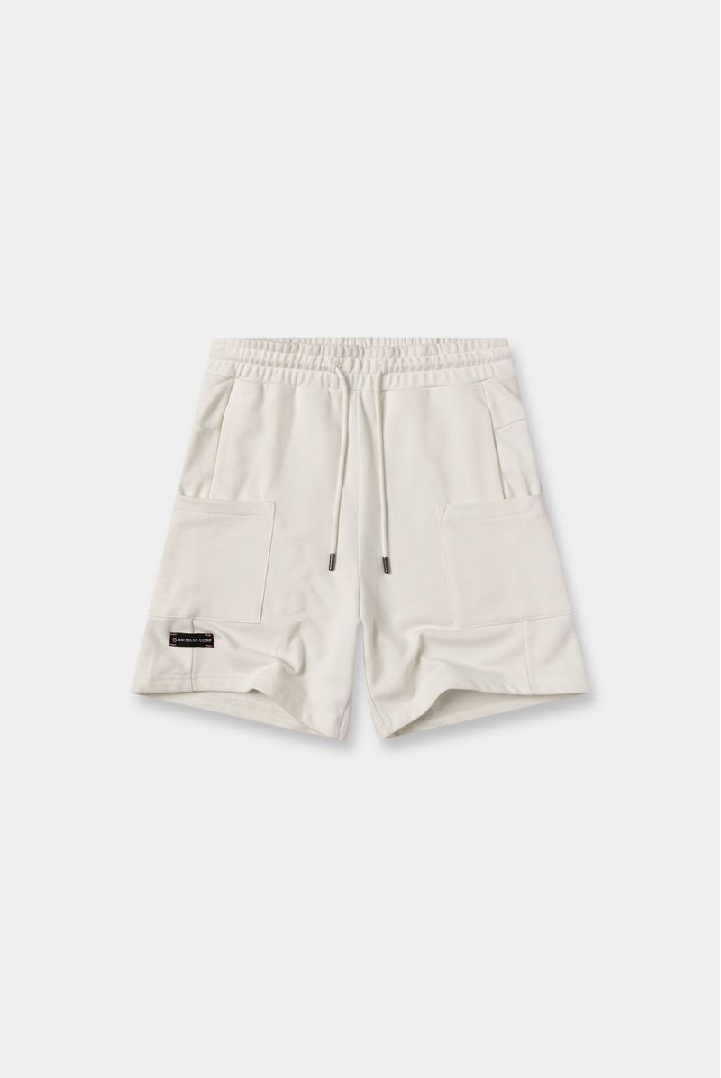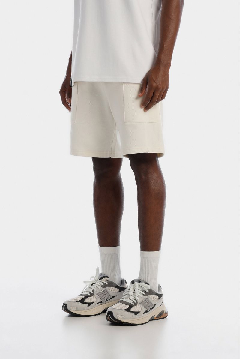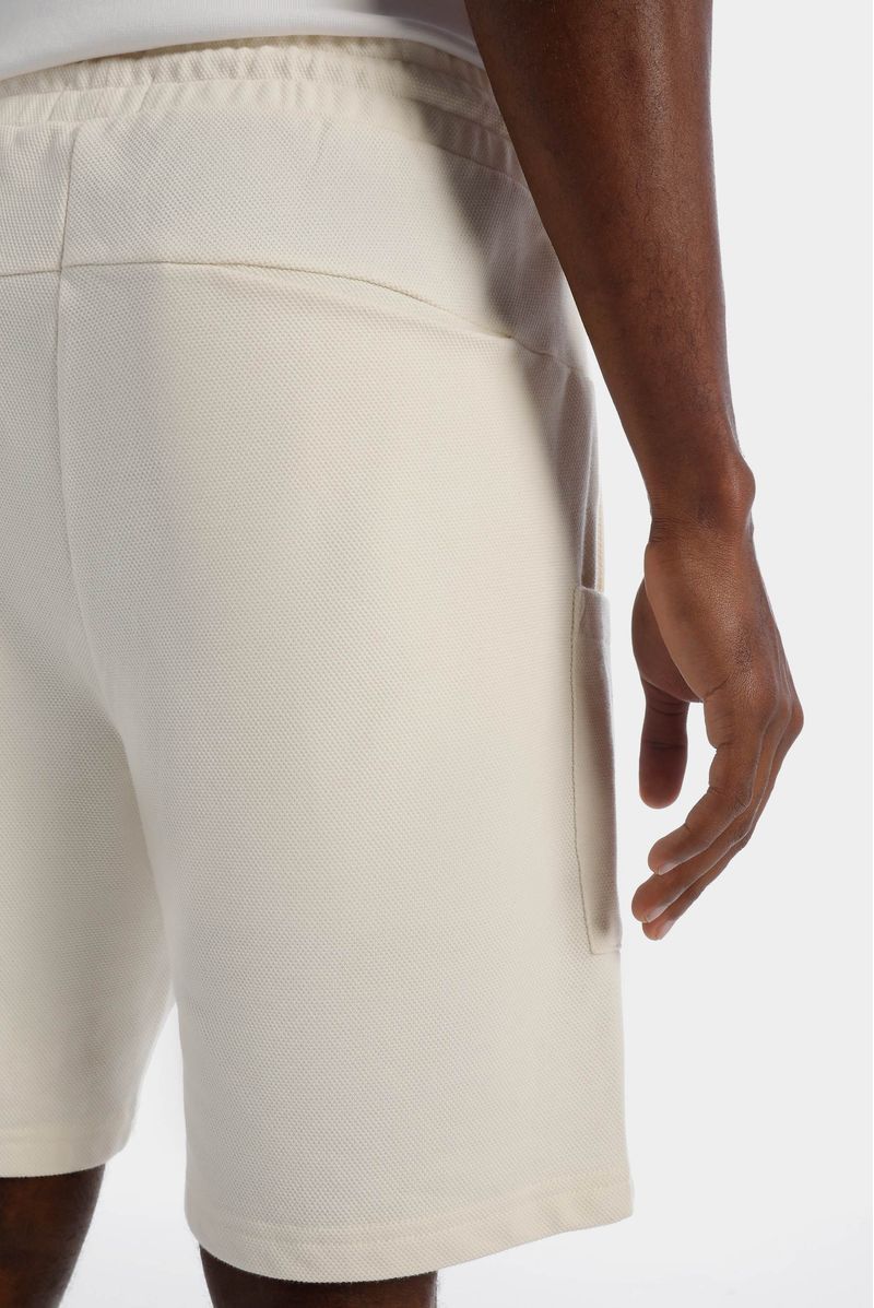Short Regular Fit confeccionado en un Piqué Perchado Premium de alto gramaje de 260gr de peso. Lleva dos bolsillos tipo parche a cada lado y un banderín tejido sobre el costado de la pierna derecha.