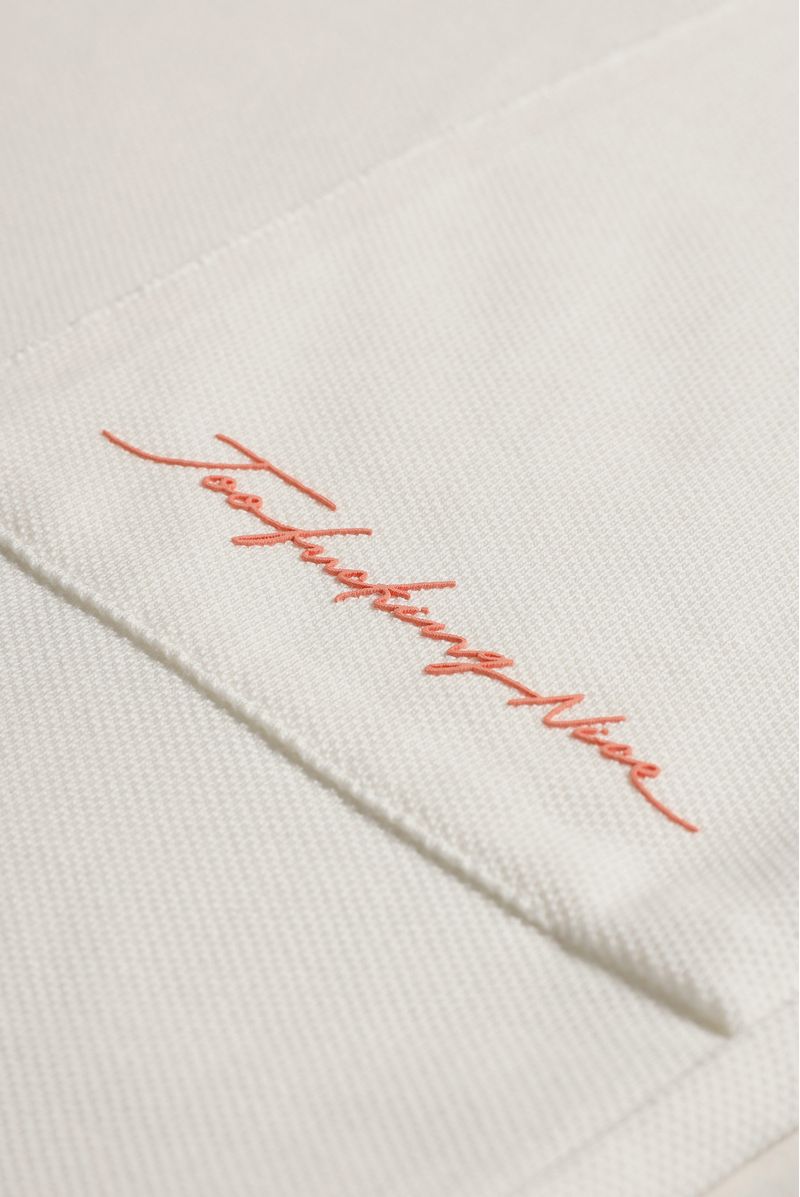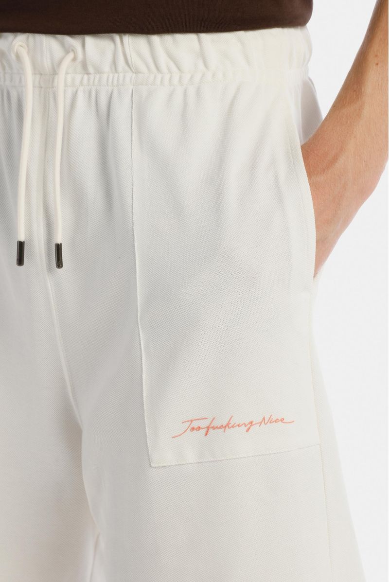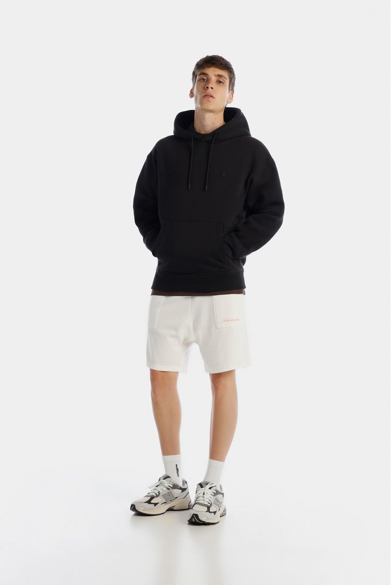 Short Oversize confeccionado en un Piqué Premium de alto gramaje de 265gr de peso. Con estampación en frente utilizando la técnica de alta densidad, lo cual le da relieve al texto. Además lleva un aplique bordado, bolsillos tipo parche y un banderín.