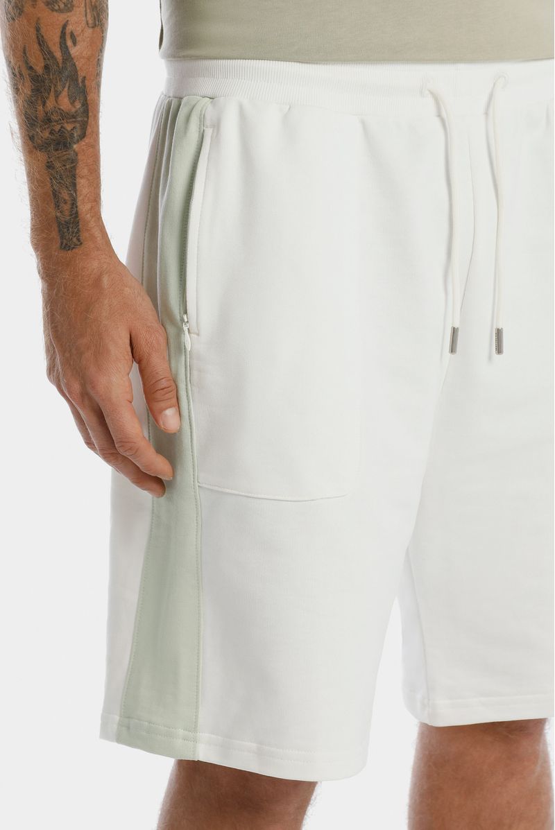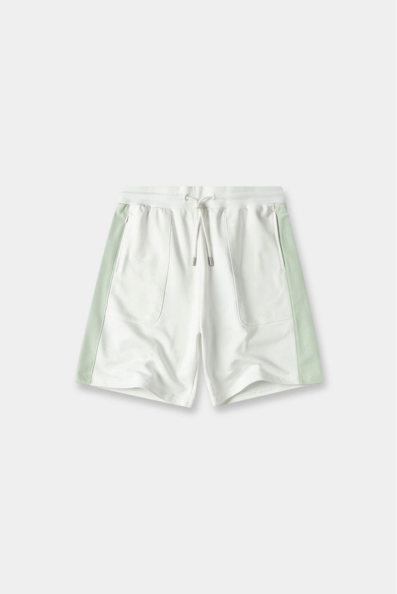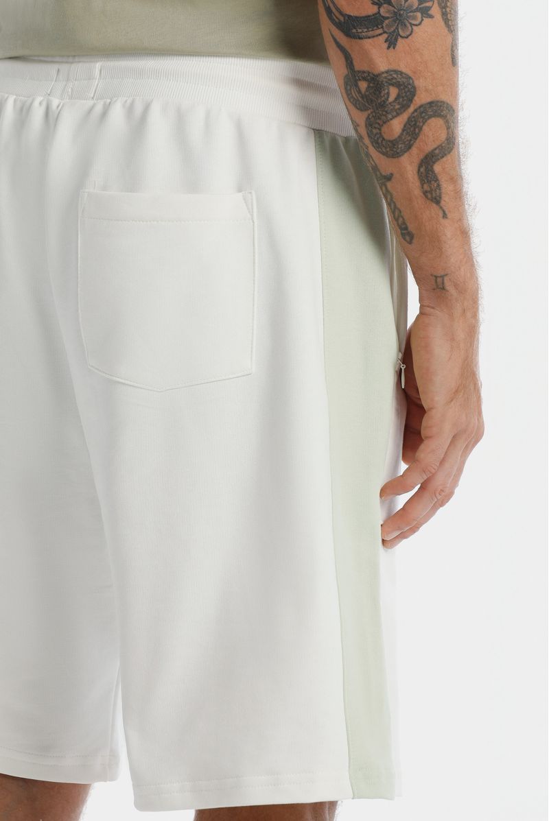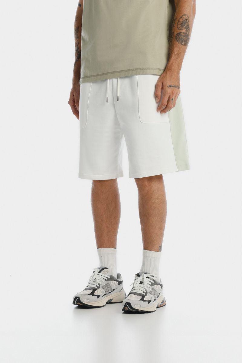 Short Regular Fit confeccionado en una Burda Premium de alto gramaje de 305gr de peso. Con estampación en frente en alta densidad. Lleva piezas en costados en tela contraste, bolsillos de parche con cierre invisible en bolsillo derecho.