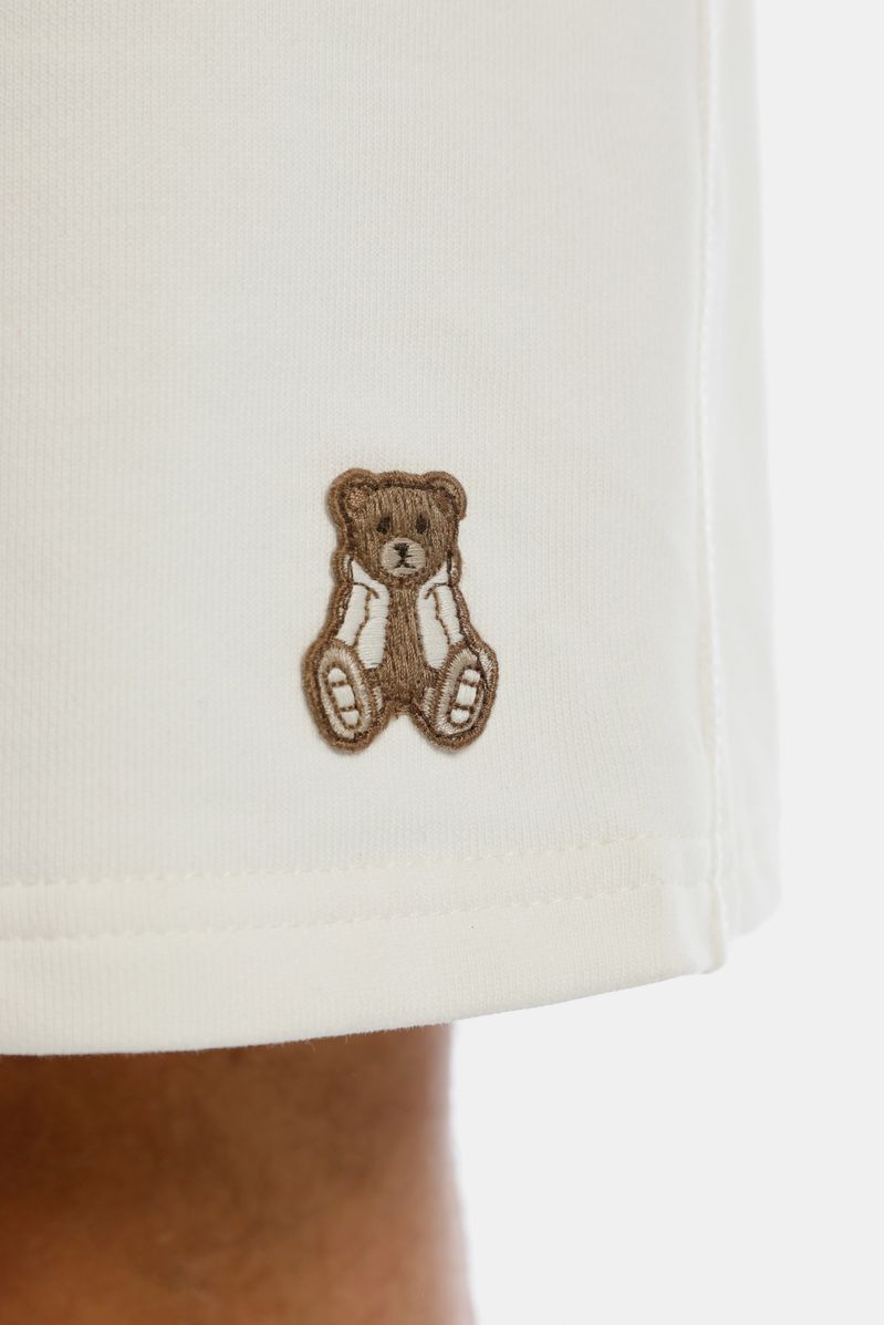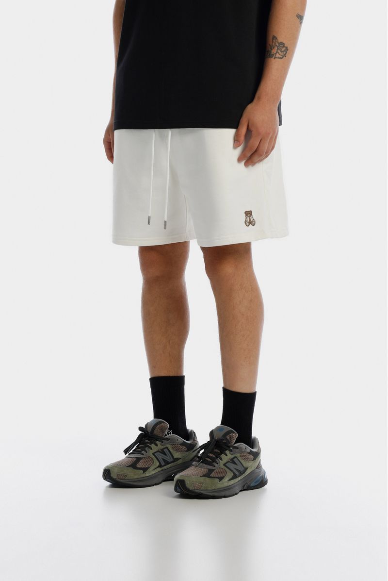 Short regular fit confeccionado en una burda French Terry premium de alto gramaje, con un peso de 400gr, el short tiene un insumo tejido Oso en la pierna izquierda y un texto estampado en la pierna derecha en técnica alta densidad.