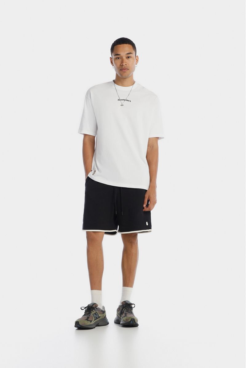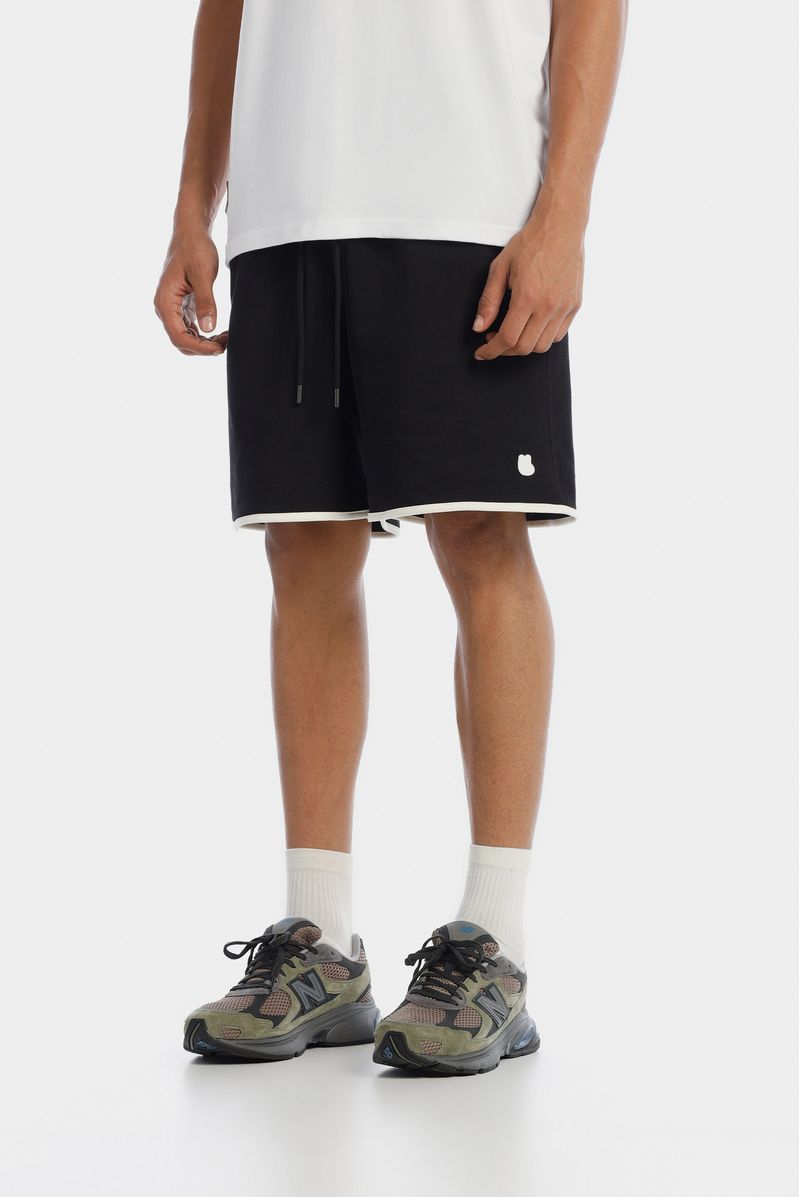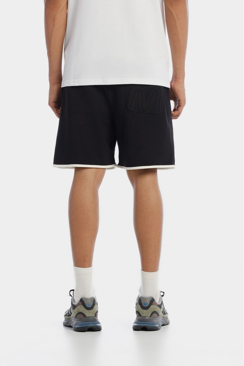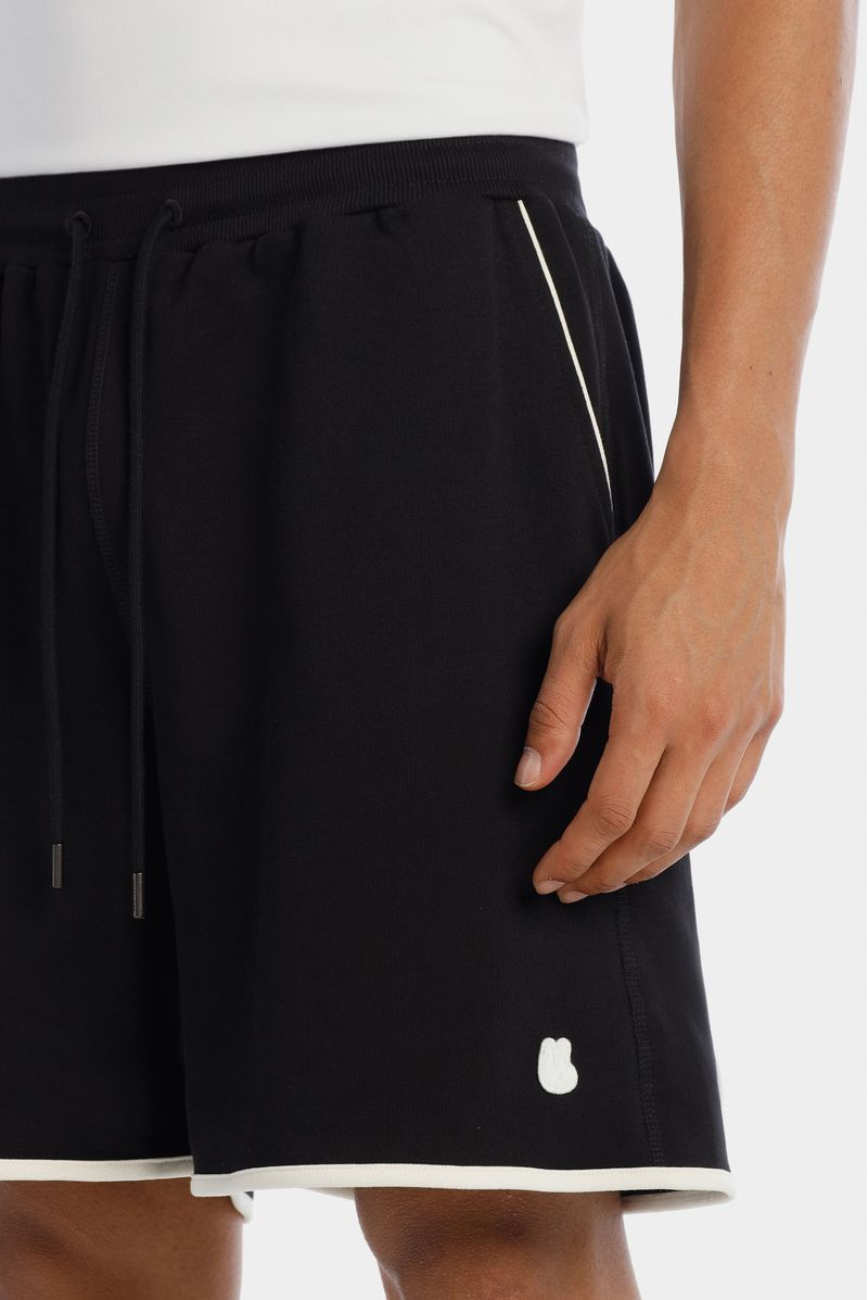 Short Regular Fit confeccionada en una Burda Premium de alto gramaje de 305gr de peso. En frente lleva un aplique bordado y en el bolsillo posterior la silueta del logo de la marca. Tiene sesgos en contraste color marfil en ruedos y bolsillos.