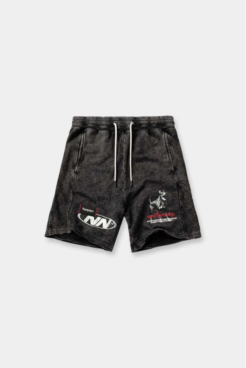 Short Regular Fit confeccionado en una Burda Premium de 305gr de peso. Con estampación en plastisol. Lleva piezas en costados por revés de tela, cordón en color marfil, un banderín bordado en costados, lavandería en color negro y ruedos rústicos.