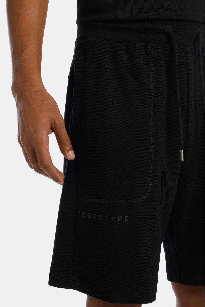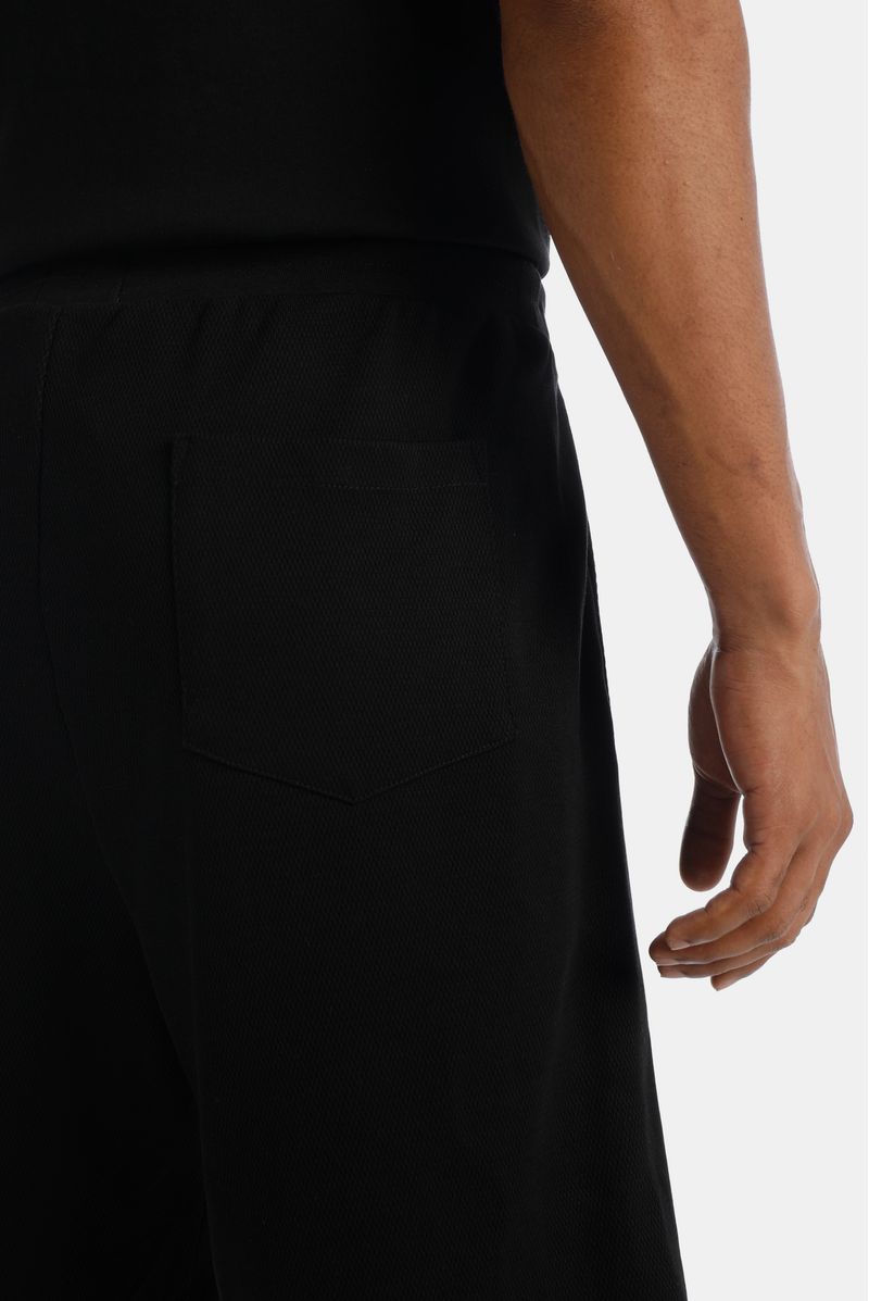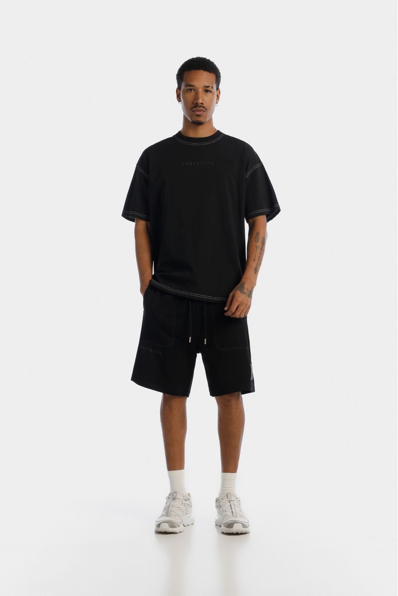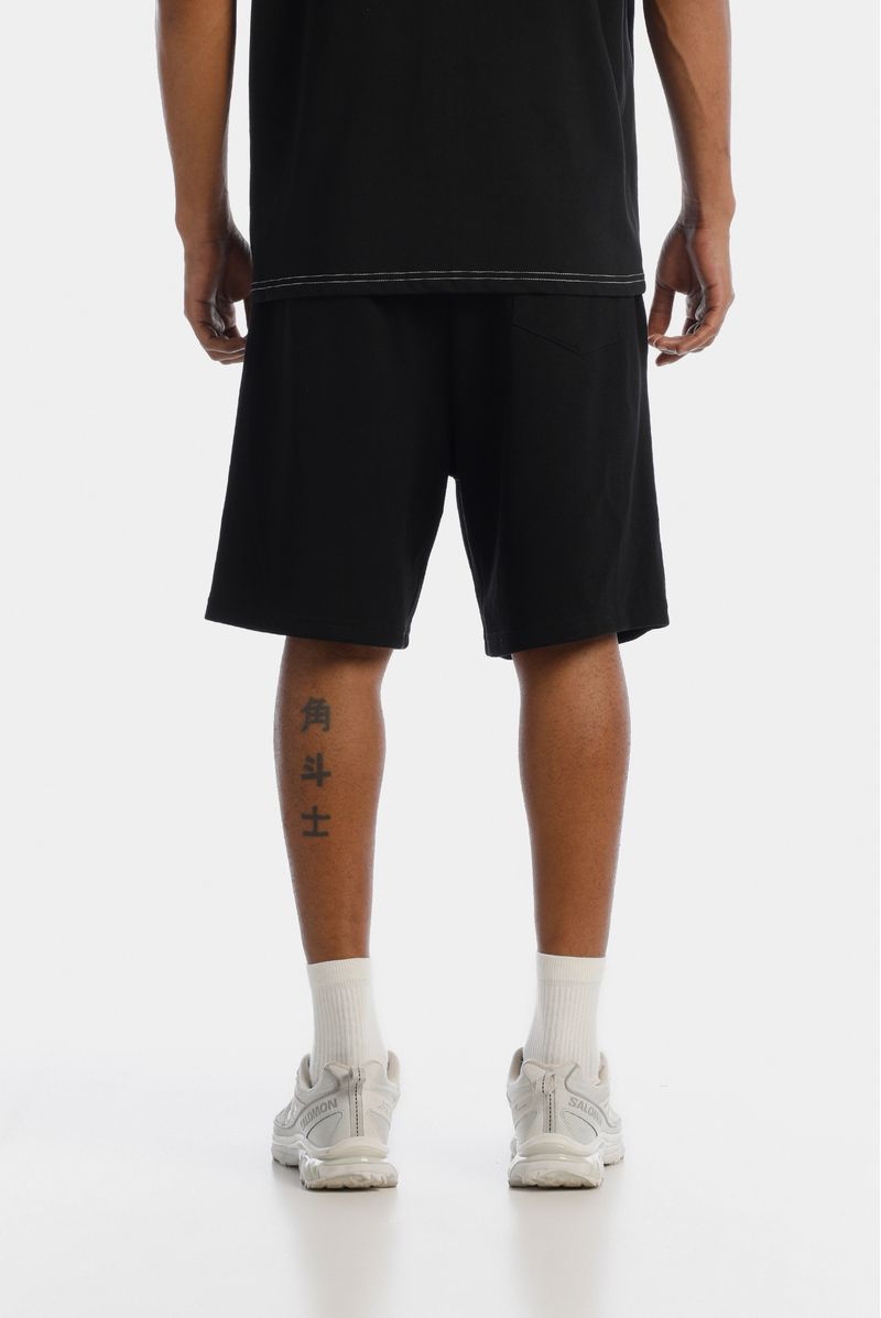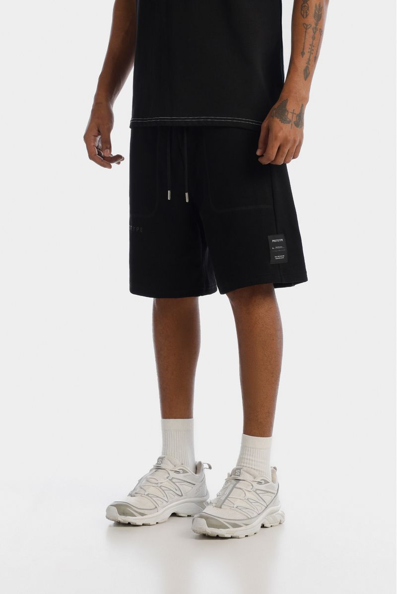 Short Oversize confeccionado en una Jacquard Premium de alto gramaje de 320gr de peso. Con estampación en frente en alta densidad. Lleva bolsillos de ribete en costados, con terminación en frente con costura decorativa. Además lleva un banderín.