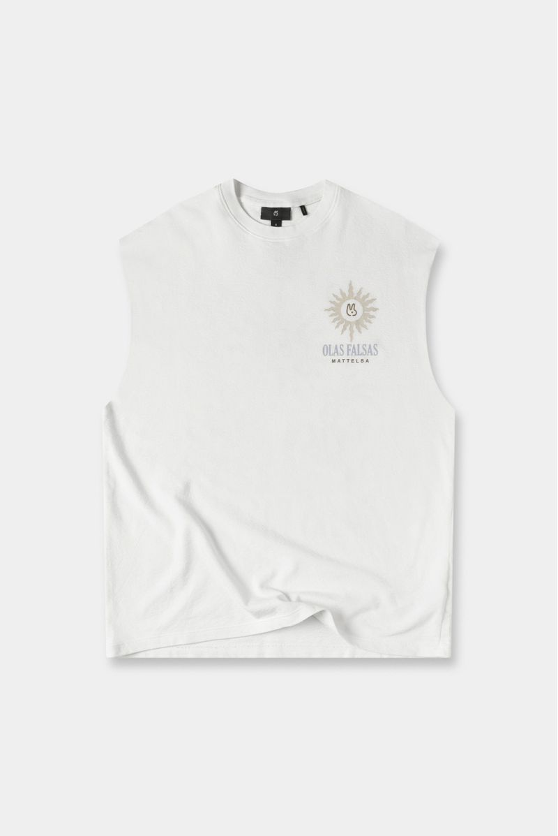 Tank Regular Fit confeccionada en un Jersey texturizado Premium de gramaje medio de 210gr de peso. Con estampación en frente y espalda utilizando la técnica de estampación textil. Además lleva bordado en espalda.