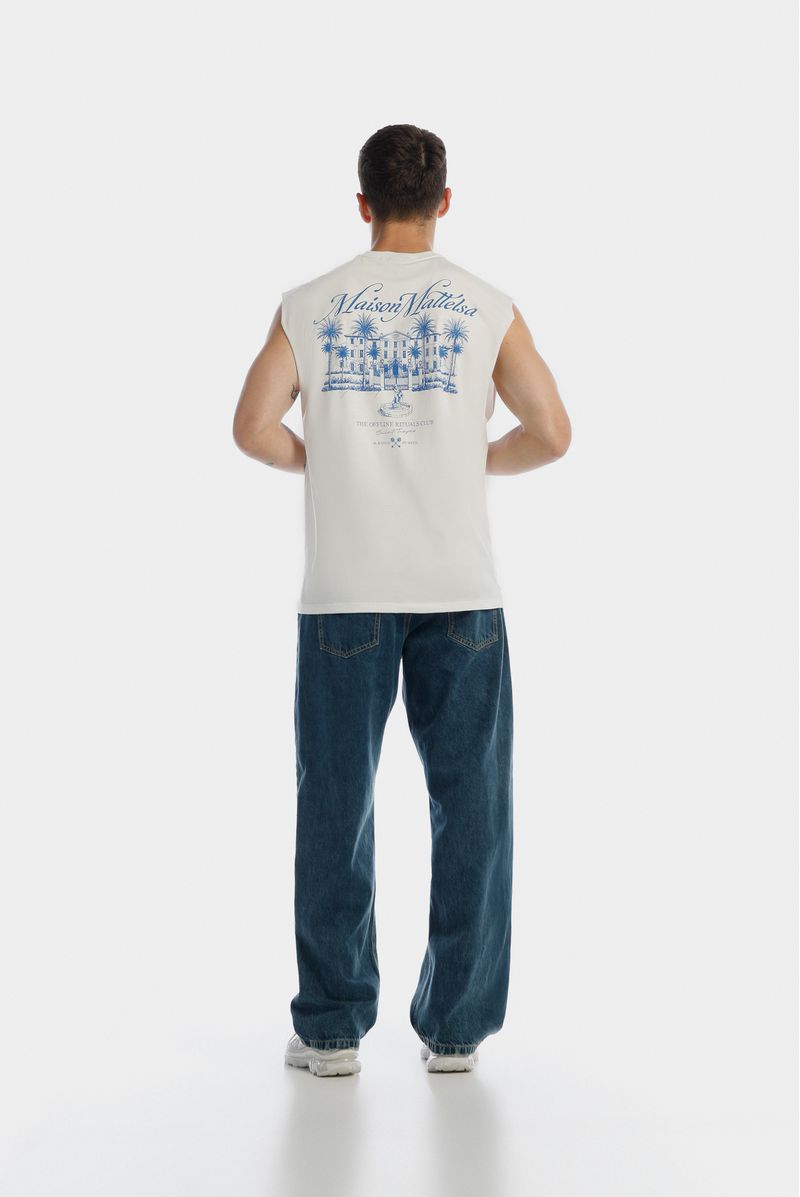 Tank Over confeccionado en un jersey premium de alto gramaje. Con un peso de 200gr, El Tank lleva Estampación en frente y espalda en técnica textil.