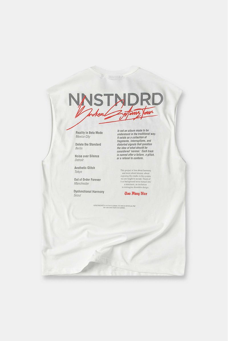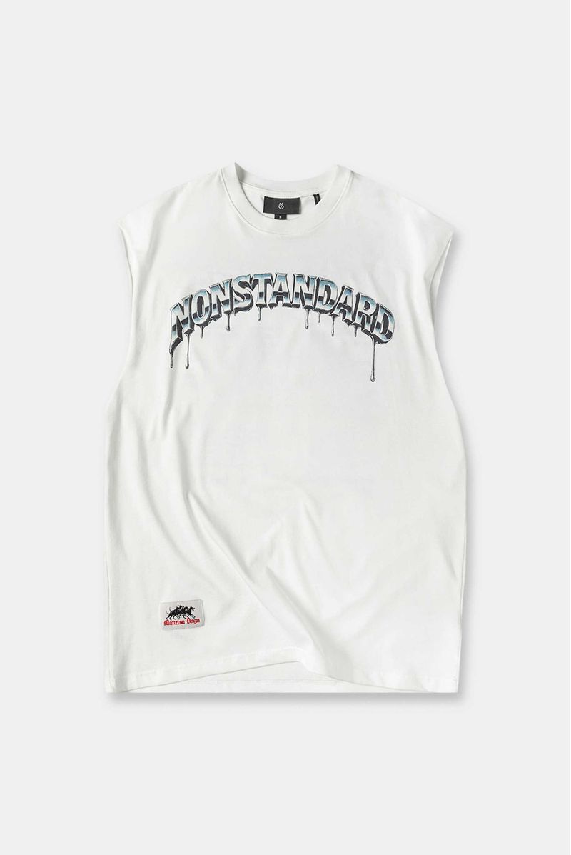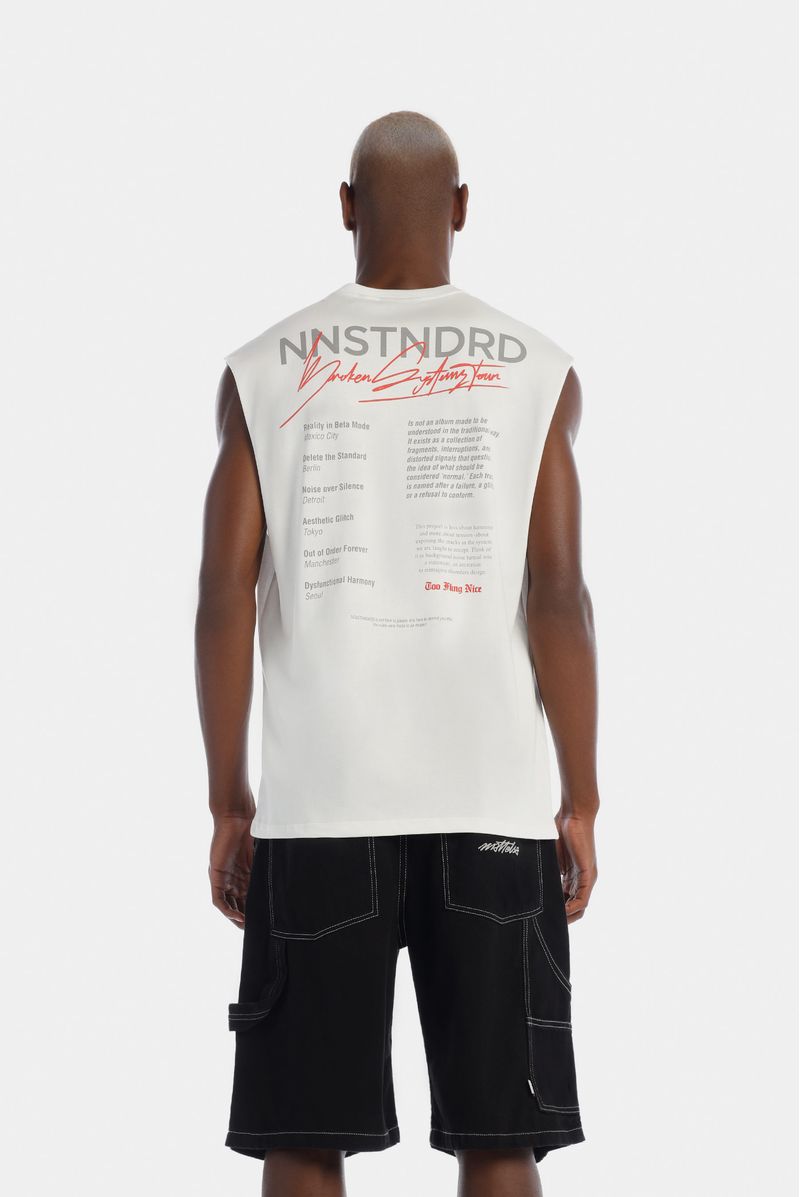 Tank Regular Fit confeccionada en un Jersey Premium de gramaje medio de 200gr de peso. Con estampación en frente combinando 2 técnicas, plastisol y estampación textil, y en espalda puff y estampación textil. Además lleva un banderín.