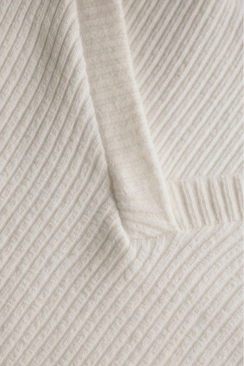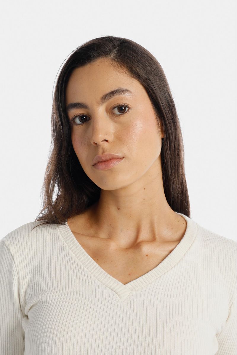 Top manga larga marfil confeccionado en un rib de 320 gramos. Su escote es en V.