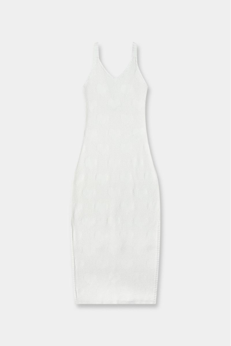 El modelo mide 1.80m y tiene una talla SModel is 5ft 11in/1.80m and wears size SVESTIDOTEJIDO#f2f1d1Vestidos100% algodón3